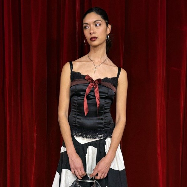 Este top fue realizado a partir de una prenda vintage original de Kosiuko. Ícono del archivo Y2K, fue transformado para darle nueva vida sin perder su esencia nostálgica y auténtica. Confeccionado en tejido elástico que se adapta al cuerpo.