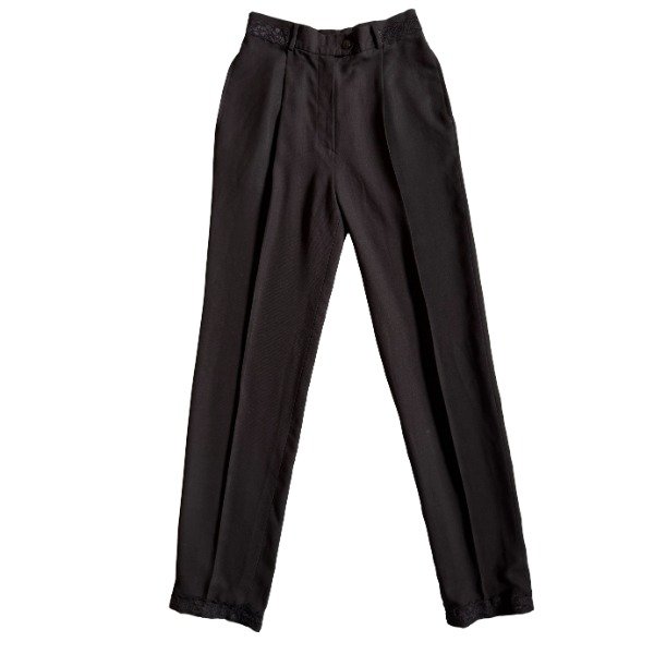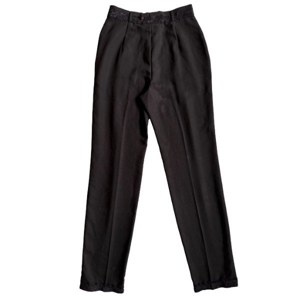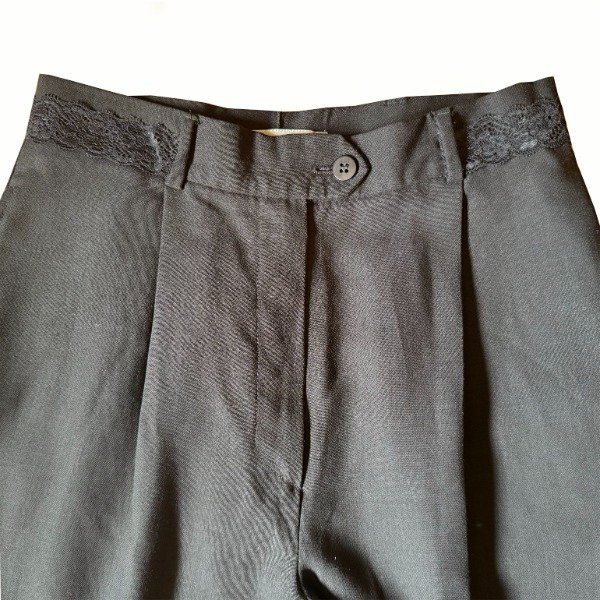 Este pantalón original de Max Mara fue intervenido con detalles de encaje. Generando una pieza única a partir de un diseño de la casa italiana reconocida por su sastrería precisa y elegancia atemporal. El resultado combina la herencia refinada de la pieza original con una mirada romántica.